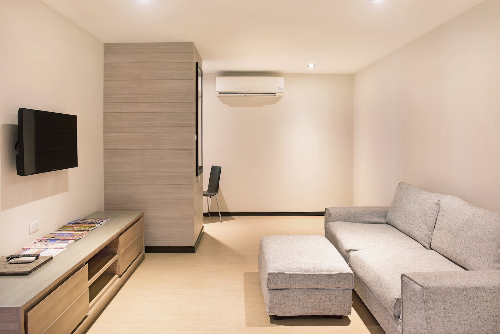 พักผ่อนสบายๆ ในห้องพักกว้างให้ความรู้สึกหรูหราน่าอยู่ ห้องจูเนียร์ สวีท (ขนาด 52 ตร.ม.) แบ่งโซนห้องพักเป็น 2 ส่วน ทั้งส่วนห้องนอนและห้องนั่งเล่น มีความเป็นส่วนตัว สามารถใช้เป็นพื้นที่ทำงานได้อย่างลงตัว